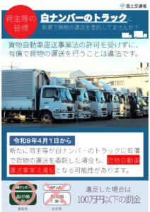 本年6月に公布された「貨物自動車運送事業法の一部を改正する法律」(令和7年法律第60号。以下「改正法」という。)のうち、違法な白トラに係る荷主等への規制や委託次数の制限等に関する規定の施行期日を、令和8年4月1日と定める政令等が、令和7年11月に閣議決定されました。
