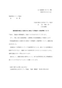 国土交通省物流・自動車局 安全政策課長より「高速道路本線上に設置された乗合バス停留所への駐停車について」通達が発出されました。